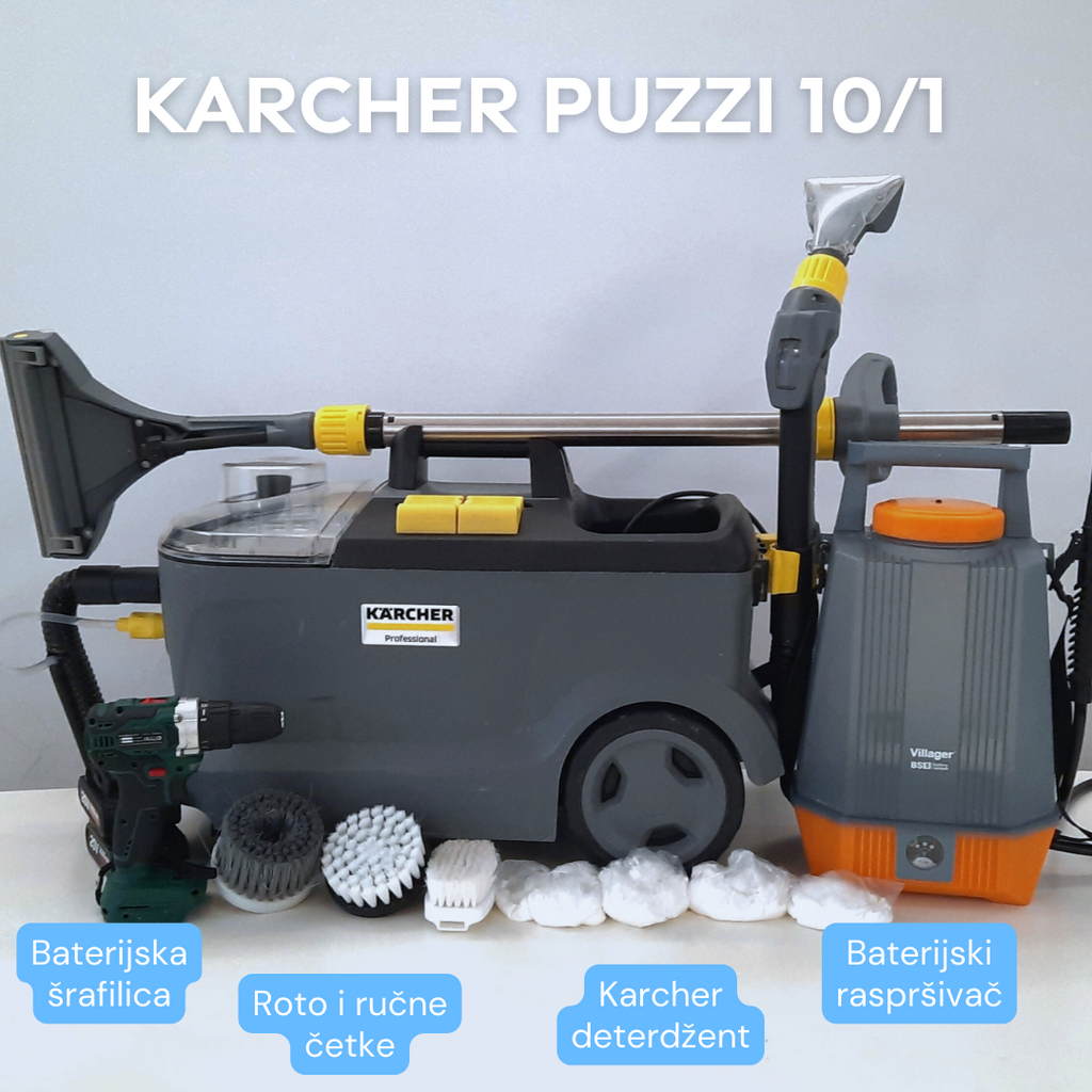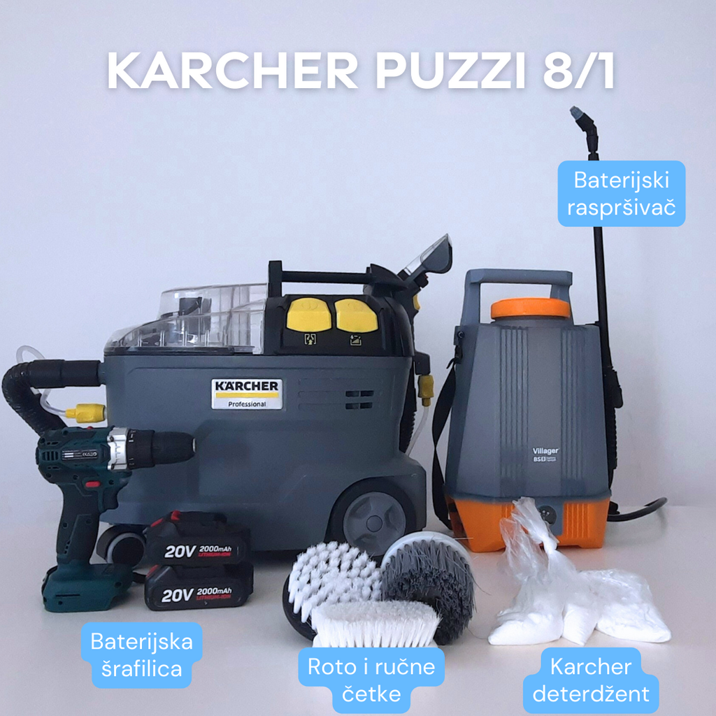 Karcher PUZZI 8/1 namenjena za dubinsko čišćenje nameštaja, automobila, dušeka, stolica. . . Koristi samo mlaznicu(papuču) od 11cm.